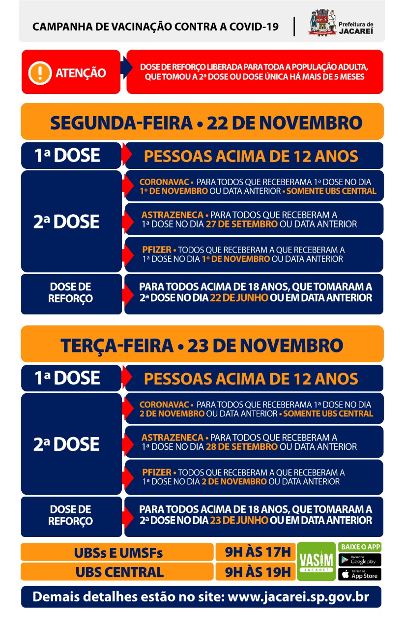 Dose De Reforco Primeira E Segunda Dose Confira O Cronograma De Vacinacao De Segunda 22 E Terca 23 Em Jacarei Prefeitura Municipal De Jacarei